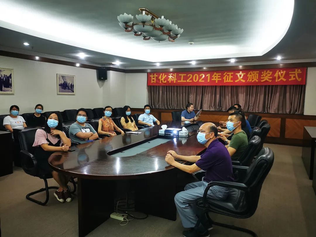 2021年7月28日下午,公司舉辦了獲獎征文頒獎儀式,儀式由公司工會主席張琛女士主持,共設三個會場,江門會場、成都會場及沈陽會場,公司及下屬子公司全體黨員,工會小組成員、參賽人員等共計40余人參加了此次儀式。 頒獎儀式上,工會主席張琛對本次的征文比賽表示肯定,并對參賽選手進行了高度的贊賞。同時,她強調,宣傳工作是甘化科工的一項重要工作,而征文也恰恰是其中上下參與度較高的宣傳方式,值得我們傳承及發揚;宣傳工作要結合甘化實際,創新形式,有理論高度,有實際效果。張琛強調宣傳工作要走在前、干在先,要鼓舞人心,凝聚力量,進一步提升公司的軟實力。